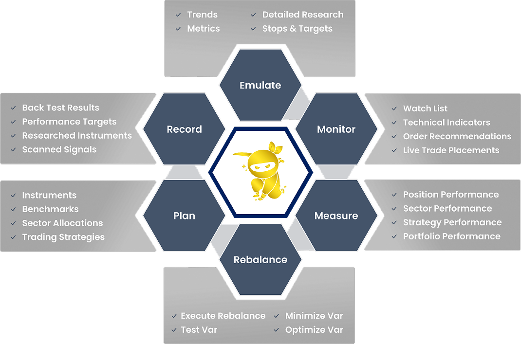 Tradelytics Platform enables Investors, Wealth Managers and aspiring Analysts to emulate and execute Portfolio Management with the livemarket data for their simulated and live portfolios. Portfolio is measured for risk and reward. Users anywhere can record fundamental and technical analysis for all of their positions, monitor charts and re-balance the portfolio to earn stars for their effectiveness in maintaining their declared performance targets.
