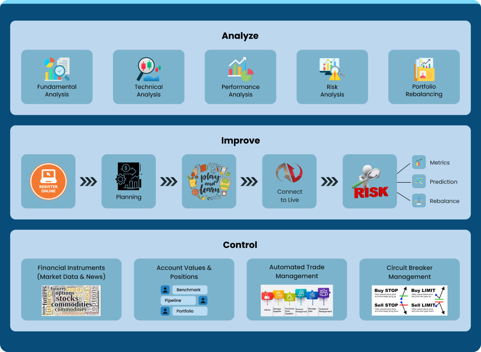 - System will continuously measure and inform the Risk, Performance and Technicals for Positions and Accounts.